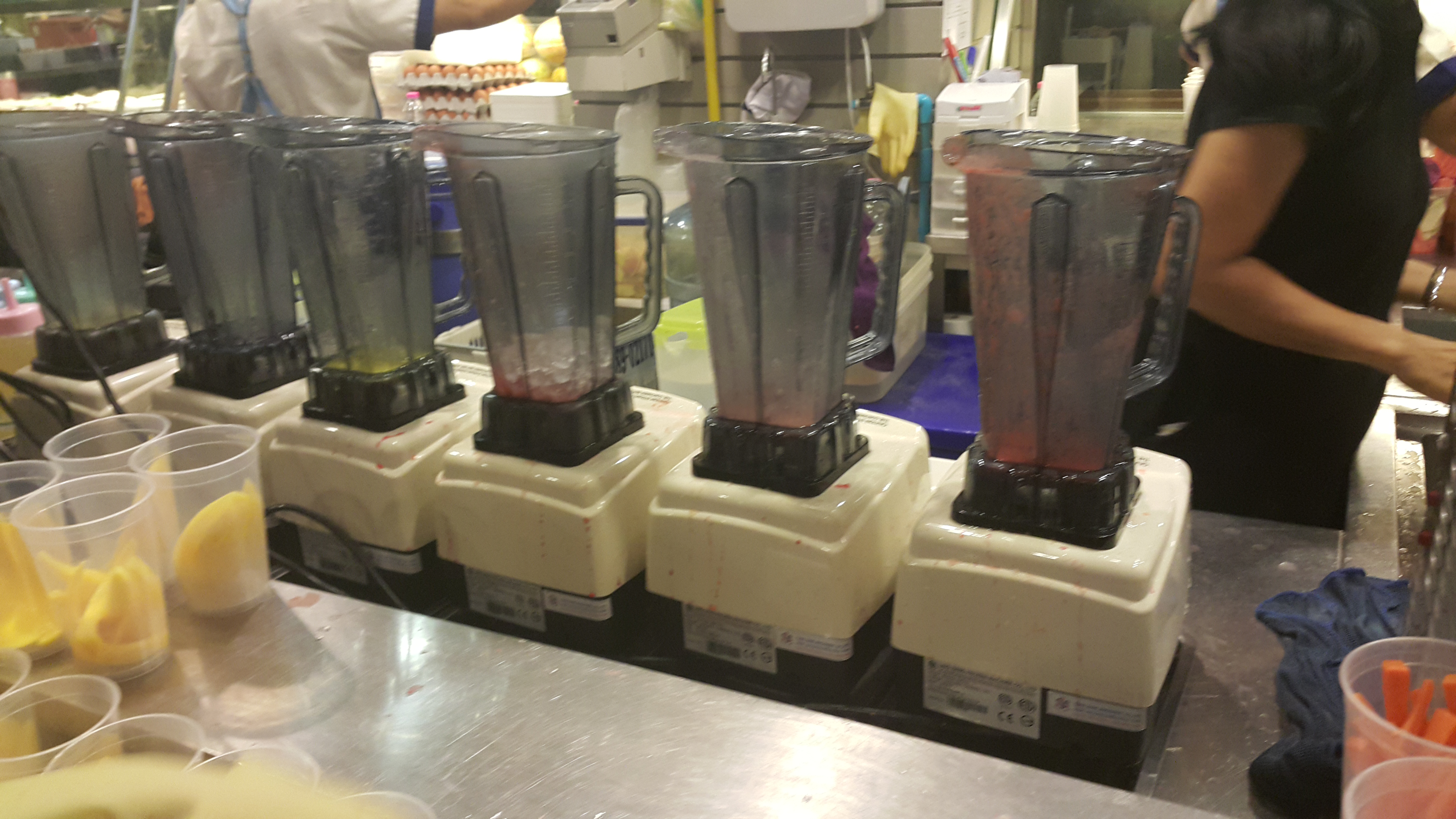 As we walked around the food court we realized 99% of the things they eat are so healthy…lots of fruits and veggies. lots of smoothie stands freshly made. So you know us we had to try some and it was really good.