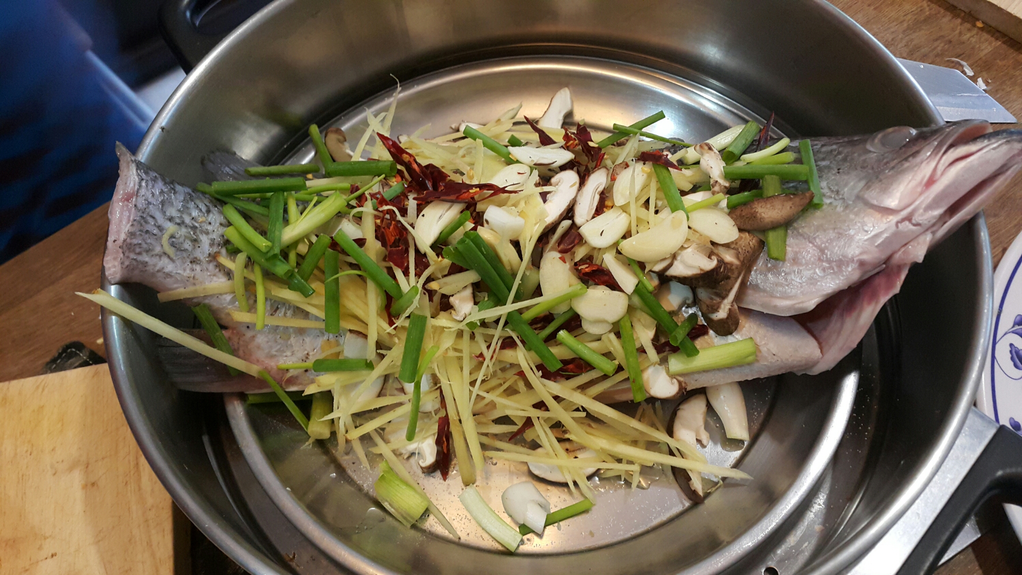 Getting ready to stuff our fish with thai herbs and steam